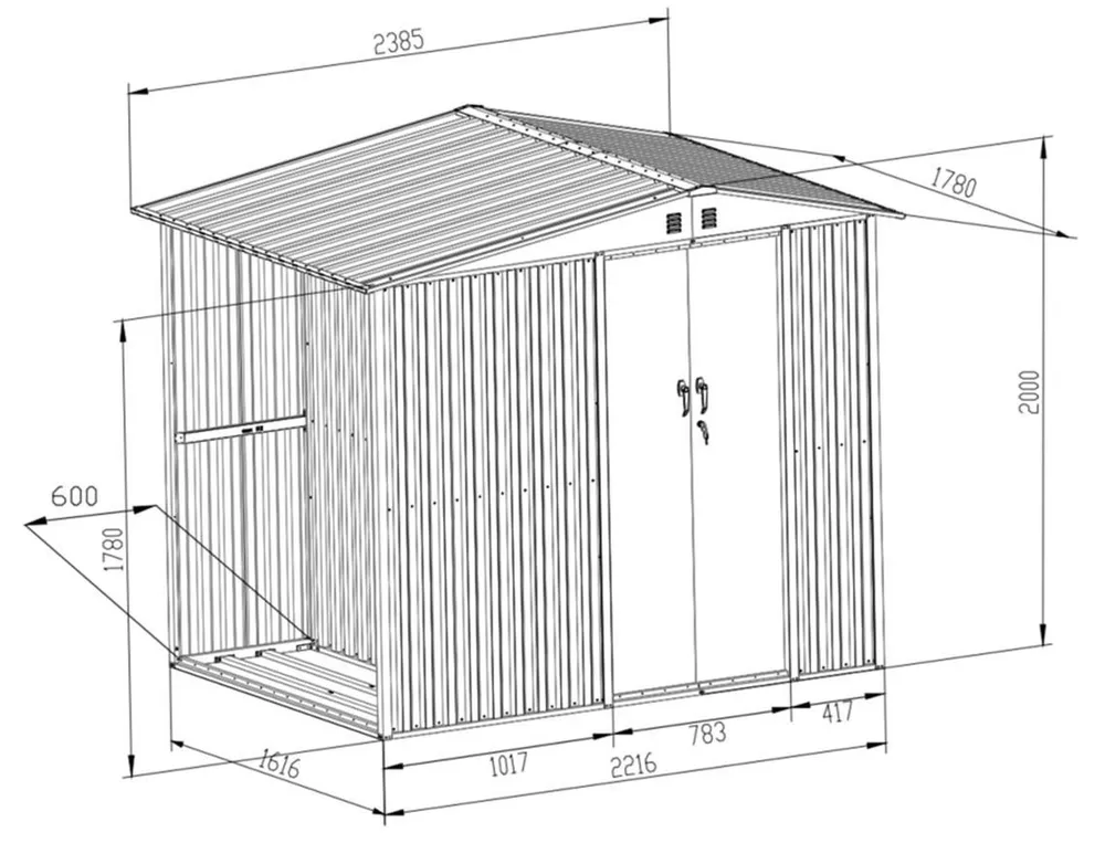 Zahvaljujući čvrstom ramu, šupa zadržava stabilnost i pri nepovoljnim vremenskim uslovima.